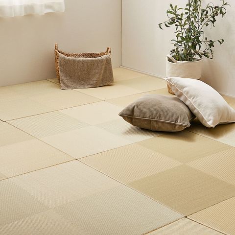 軽量で女性1人でも簡単に床に並べるだけで畳スペースが作れる置き畳です。ちょっとした隙間スペースを有効活用できるのでキッズ向けのプレイマットからシニアのお昼寝、お父さんお母さんのごろ寝スペースまで簡単に作れます。