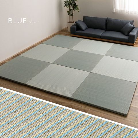 天然い草×樹脂素材。調湿効果や抗菌性など、天然い草の自然の機能や風合いはそのままに、丈夫な樹脂パイプを織り交ぜることで耐久性をアップ!異なる素材のいい性質を残したハイブリッド置き畳。樹脂パイプは傷つきにくく、日焼けなどによる色褪せにつよいため色合いや風合いを長く保ち、耐久性が上がることでより長くお使いいただけます。場所や広さはお好みで、置くだけでかんたんに畳スペースがつくれる置き畳は、ちょっとした隙間スペースを有効活用できるので、キッズ向けのプレイマットからシニアのお昼寝、お父さんお母さんのごろ寝スペースまで使い方はいろいろ。軽量だから設置はもちろん、掃除やなどの移動もらくらく。適度なクッション性があり、階下への配慮や床のキズ防止など、子育て中にもうれしい便利グッズ。