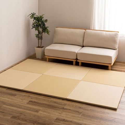 パイプ状にした樹脂素材を、い草と同じように織り上げた『い草風』の置き畳。水に強く、ジュースなどをこぼしてもさっと拭き取れるから汚れても安心。子どもやペットのいるご家庭におすすめです。ちょっとした隙間スペースを有効活用できるのでキッズ向けのプレイマットからシニアのお昼寝、お父さんお母さんのごろ寝スペースまで使い方はいろいろ。置くだけでかんたんに畳スペースが作れます。軽量だから設置はもちろん、掃除やなどの移動もらくらく。適度なクッション性があり、階下への配慮や床のキズ防止など、子育て中にもうれしい便利グッズ。淡くやさしいパステルカラーで、お部屋の雰囲気にあわせて5色からお選びいただけます。