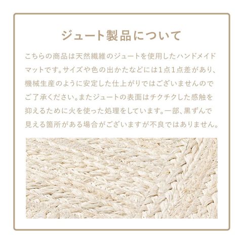 耐久性が高く、織り目のデザインが特徴的なジュートラグマット。ジュートの素朴で自然な風合いは、ナチュラルインテリアはもちろん、アジアンテイストやモダンなインテリアなど、暖かみのあるお部屋作りにぴったり。また、夏のイメージが強いジュートですが、保温性、吸湿性に優れ夏は涼しく冬は暖かく過ごせるオールシーズンアイテムです。