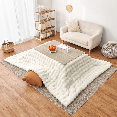 商品説明うさぎの毛並みを表現した「ラビットファー調」は、きめ細やかでうっとりするような、なめらかな肌ざわり。やさしく包み込むようなふわふわタッチに、ぽこぽことした見た目も可愛いおしゃれなこたつ布団です。かさばらずすっきりと使いやすい薄掛けタイプのこたつ布団ですが、たっぷりの中わた入りでボリュームがあり、ぎゅっと詰まった高密度な長毛パイルが空気を多く含み、あたたかさを保ち快適に。また、洗濯機で洗えるから汚れても安心、いつも清潔にお使いいただけます。