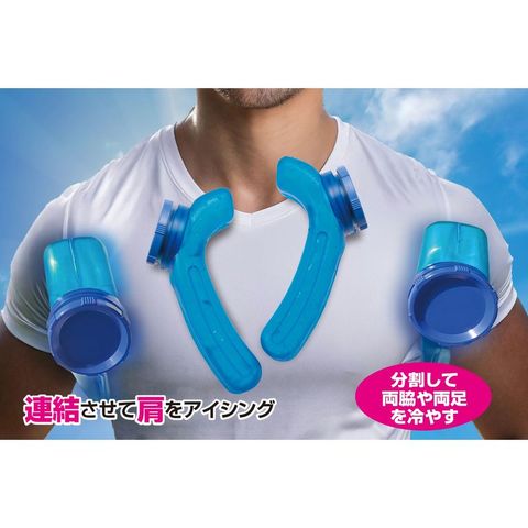 炎天下のスポーツ・屋外作業の熱中症に!炎天下のスポーツ・屋外作業の熱中症対策に!氷を直入れして速攻アイシング。アーム連結で首・肩・太ももなどハンズフリーでアイシングできます。アームを外せば、同時に別々の部位をアイシングできます。脇下や股関節などを冷やすのに便利です。子どもから大人まで使えるフリーサイズ。<使用方法>1.ひんやりクール。冷水又は氷と水を入れて使用。2.極冷クール。水を入れ家庭用冷凍庫で凍らせて使用。※クーラーボックスとの併用で6~7時間効果が持続!<仕様>口内径:Φ48.5mm●冷凍時間:約8時間●容量(1本あたり):350ml