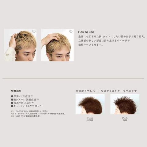 ハードなホールド力でパリッとスタイルキープするジェル。
