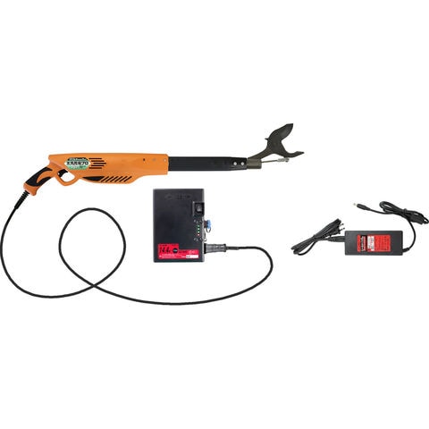 ●枝木を挟み込み、トリガー(スイッチ)を引くだけで、40mmの太さまで切れます。●ブラシレスモーター搭載により、従来のモーターと比べモーター寿命が約50倍の5000時間以上の寿命を実現しました。●バッテリー(Li-IOn 14.4V)をベルトにかけて使用するセパレート式となっており、重量が軽くなっております。●トリガーと刃の動きは連動しておりますので指を離すと刃は開きます。●バッテリーは高速バリカン、太丸ハンディー25と併用出来ます。●モーター保護のために過電流防止装置がバッテリー劣化防止のために過放電防止装置が内蔵されています。●モーター寿命5000時間以上です。●ブラシレスモーター搭載モデルです。●フル充電で40mmの太枝なら約900本、15mmなら約2000本切断できます。●切断能力(mm):40●刃長(mm):90●全長(mm):750●電圧(V):14.4●容量(Ah):7.0●伸縮:不可●適合機種:N930、N931、N932、N933●最大切断枝径(mm):40●適合替刃:N-912-1 太丸充電用替刃●電池容量(Ah):7.0●最大切断径:約40mm 質量1.8kg