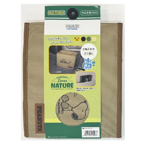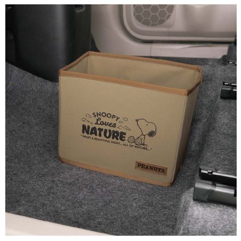 スヌーピーのアートと「SNOOPY Loves NATURE」のロゴをプリントした折り畳み可能な長方形のマルチボックス