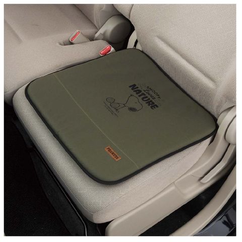キズや汚れに強い防水素材を使用したクッションで「PEANUTS」ロゴのワッペンがデザインのアクセント。