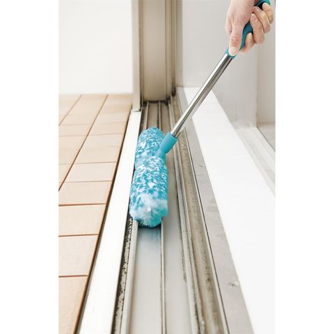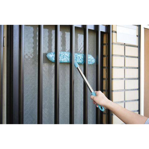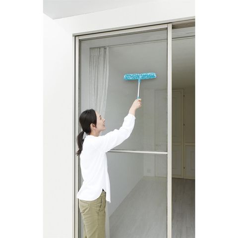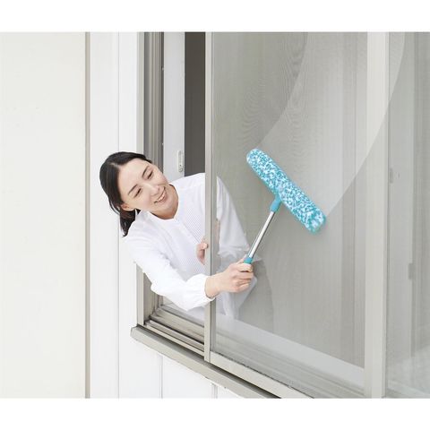 外すのが面倒な網戸のホコリや汚れをラクラクお掃除!細かい繊維が網目にフィットして水に塗らして擦るだけでごっそり汚れを取ります。ブラシの幅が31cmとワイドなので一度で広い範囲を拭き取れます。高い所に、防犯策のあるところに、窓ガラスに、サッシの溝にもお使いいただけます。ブラシ部分は水洗い可能なので衛生面も安心です。〇使用方法:水またはぬるま湯で濡らし、軽く水を切ってからご使用ください。軽い汚れの場合は、乾いた状態のままホコリを落としてご使用いただけます。※必要以上に強く網戸を押さないでください。網がはずれる場合があります。※高所で使用される際は、持ち手部の穴にお手持ちのひもを通し、そのひもに手首を通して使用するなど、落下させないようにご注意ください。※水をきる時は、ポール部を持ち、軽く振ってきるようにしてください。〇組立方法:ブラシ部にポールを回しながら入れ、固定します。※必要以上に強く固定しすぎると、はずしにくくなる場合がありますのでご注意ください。【仕様】●セット内容:ポール、ブラシ●ブラシ部:31cm●全長:37cm