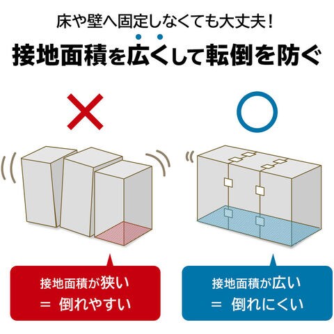 商品説明●キャビネットを連結して転倒防止、隣り合うキャビネットや2段重ねキャビネットに貼るだけです。●キャビネットやロッカーなどの転倒や落下を防止します。●隣り合うキャビネットの天板間をまたぐように貼り付け、お互いを連結する事でキャビネットの転倒を防止します。●2段重ねされたキャビネットの境目をまたぐように貼り付け、上下のキャビネットを連結することで上段のキャビネットの落下を防止します。●接着固定の為、キャビットへのネジ止めや穴あけ工事が不要で、取り付けの際にキャビネットを動かす必要がありません。●キャビネット移設時に剥離可能で、非接着部をカッター等で切断することにより、簡単に剥離できます。●幅(mm):113奥行(mm):113高さ(mm):0.55●内容物:本体:4枚●使用環境温度:0~40度●せん断強度:100kg以下/枚 質量8g