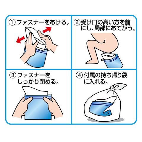オシッコをすばやく固め臭いを包む、携帯トイレです。