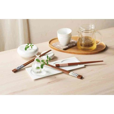 和柄の箸。パッケージの台紙を組み立てて箸置きとしても使えます。