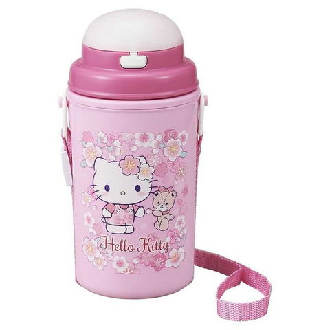 ハローキティ、さくらシリーズ、ストロー付き水筒、子供用水筒、キティグッズ、軽量ボトル、飲みやすい、ストローキャップ、保冷ボトル