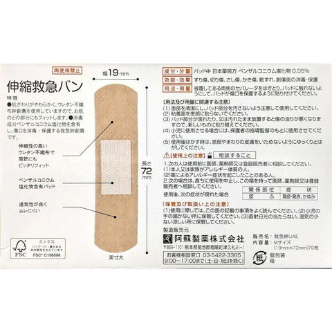 切り傷、すり傷、さし傷、かき傷、靴ずれ、絆創膏(ばんそうこう)、救急バン、消毒、伸縮、M