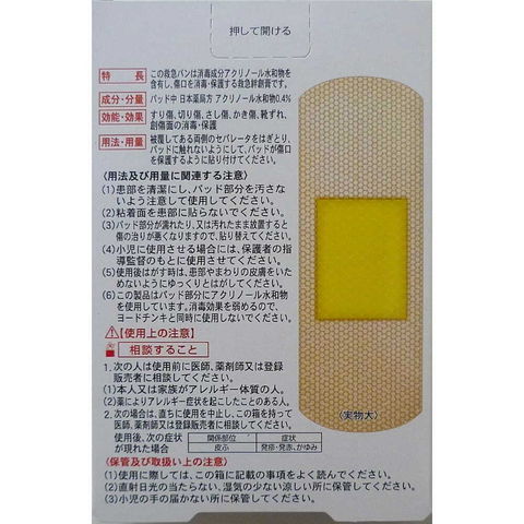 (6)この製品は、パッド部分にアクリノール水和物を使用しています。消毒効果を弱めるのでヨードチンキと同時に使用しないでください。
