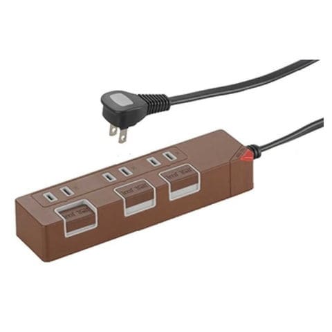 オーム電機 節電タップ 3個口 1.5m ブラウン