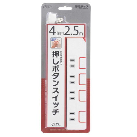 オーム電機 節電タップ 4個口 2.5m