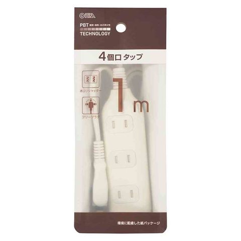 オーム電機 4個口タップ 1m HS-T41W22