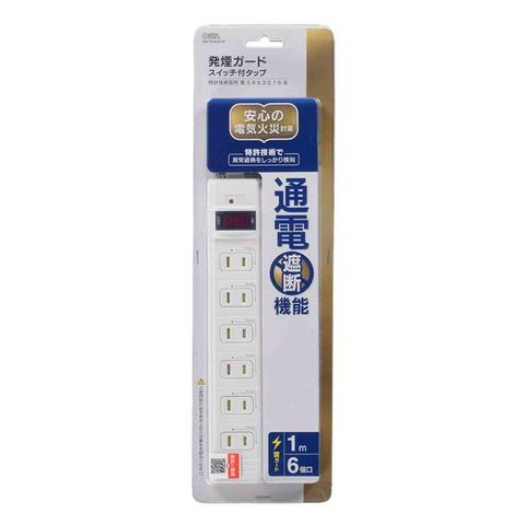 オーム電機 発煙ガード・スイッチ付タップ 6個口 1m HS-T61HJ3-W