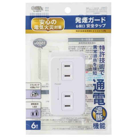 オーム電機 発煙ガード安全タップ6個口 HS-A6H-W