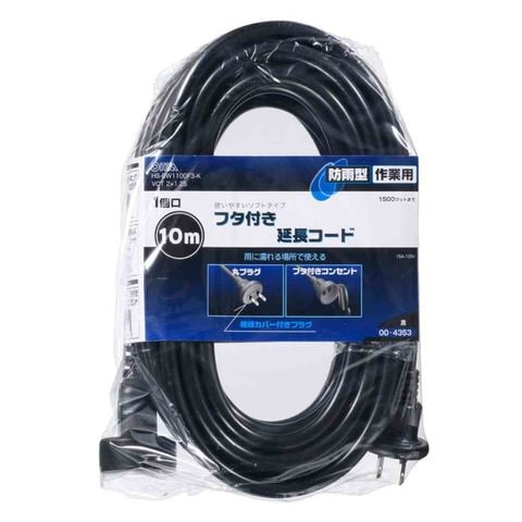 オーム電機 防雨型 フタ付作業用延長コード 10m HS-EW1100F3-K