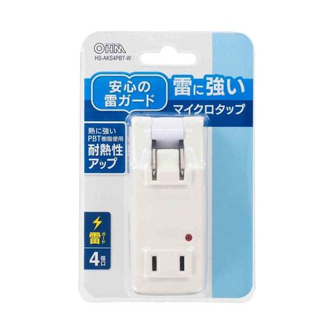オーム電機 雷に強いマイクロタップ 4個口 HS-AKS4PBT-W