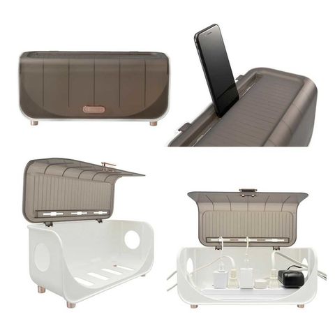 タップボックス、配線コード、すっきり収納、通気性に優れた構造、スマホ立て掛け用ホルダー、USB充電ケーブル通し穴