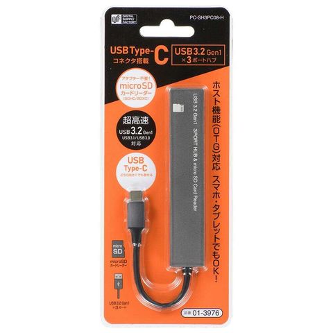 オーム電機 USBハブ 3ポート microSDカードリーダー付き USBType-Cコネクタ 1個