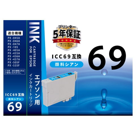 ● エプソンの純正インクカートリッジ ICC69/顔料シアンの代わりに使える互換インクカートリッジです。