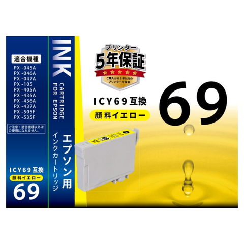 エプソン、純正インクカートリッジ、ICY69、顔料イエロー、互換インクカートリッジ、1個入り、残量表示完全対応、プリンター5年間保証対象品
