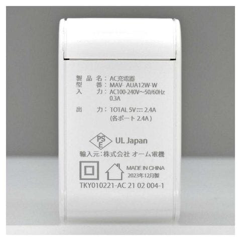 ● USB Type-A×2ポート搭載、最大出力12W/2.4A