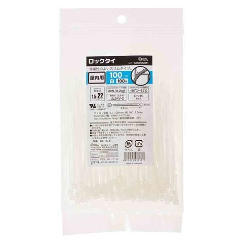 オーム電機 ロックタイ 屋内用 100mm 白 04-3131 100本入