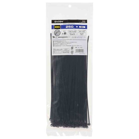 オーム電機 ロックタイ 耐候性 250mm 黒 04-3139 100本入