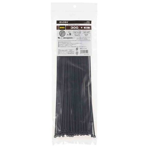 オーム電機 ロックタイ 耐候性 300mm 黒 04-3140 100本入