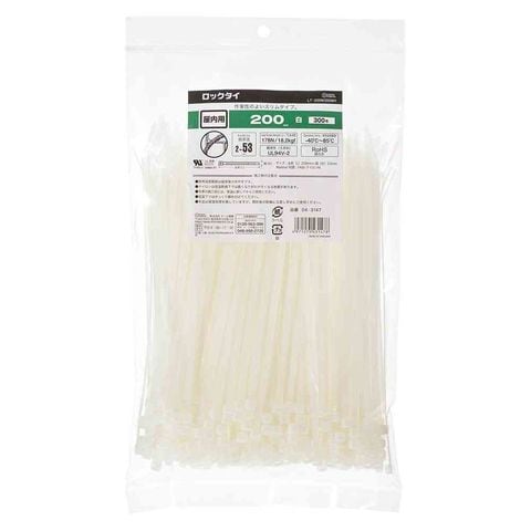 オーム電機 ロックタイ 屋内用 200mm 白 04-3147 300本入