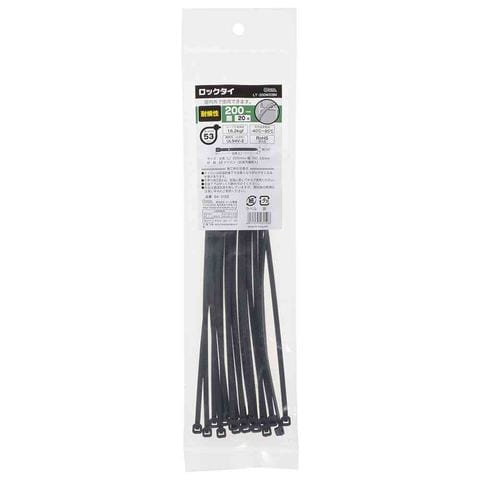 オーム電機 ロックタイ 耐候性 200mm 黒 04-3150 20本入
