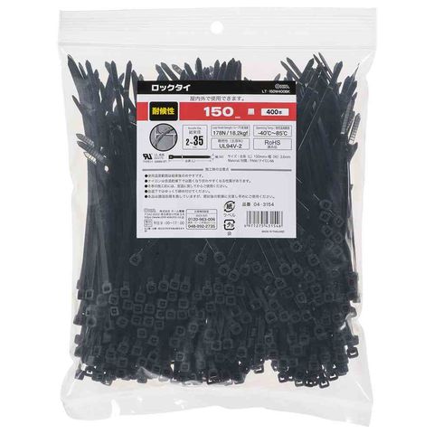 オーム電機 ロックタイ 耐候性 150mm 黒 04-3154 400本入