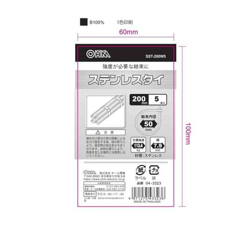 オーム電機 ステンレスタイ 200mm SST-200W5 5本入