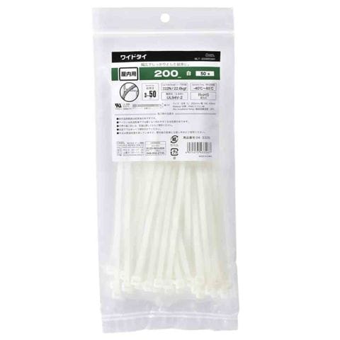 オーム電機 ワイドタイ 屋内用 200mm 白 04-3326 50本入
