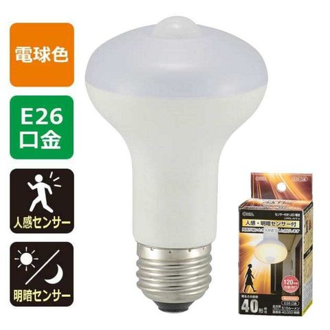 オーム電機 LED電球 レフランプ形 E26 40形相当 人感明暗センサー付 1個
