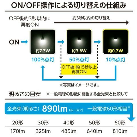 ● ON/OFFスイッチで明るさが切り替えられるLED電球