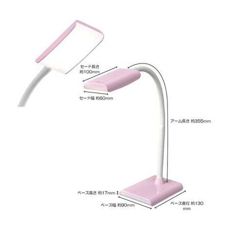 照明 デスクランプ LED ピンク 昼白色 スリム シンプルデザイン 小さくても明るい コンパクト 明るさを調整 2段階調光 広範囲を明るく照らす 学習 読書 精密な作業