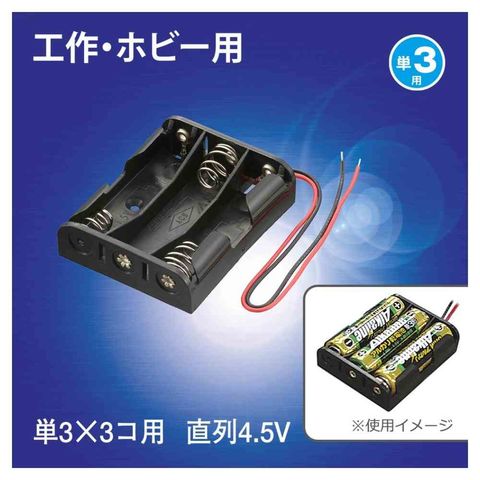 単3乾電池、3個使用、直列配線、電圧、約4.5V、理科工作などに使用する、乾電池用ケース
