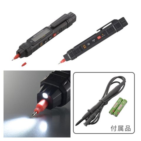 測定項目自動検知、4000カウント表示、真の実効値、LEDライト付き、バックライト付き、データ保持機能、オートパワーオフ機能、市販のワニ口クリップとの併用、片手操作も可能