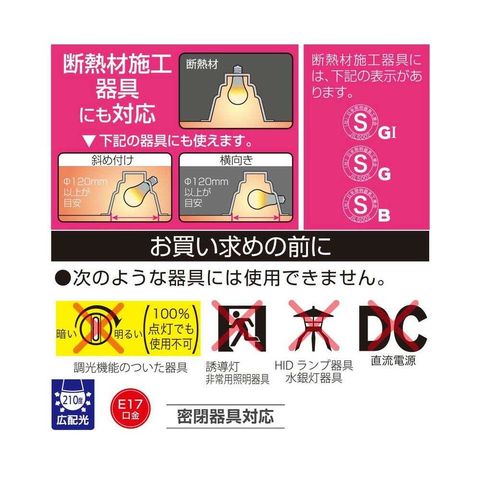 小形電球、60形、210°、広配光タイプ、密閉器具対応、断熱材施工器具対応