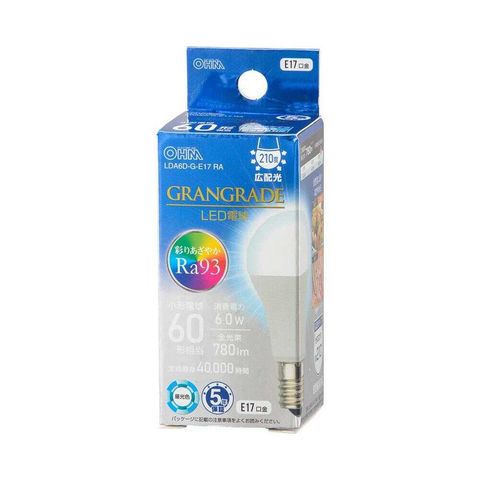 彩り、あざやか、Ra93、GRANGRADE、LED電球、自然光、小形電球、60形、210°、広配光タイプ、密閉器具対応、断熱材施工器具対応