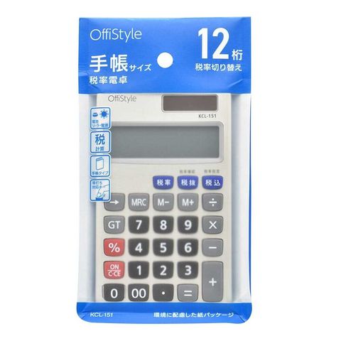 オーム電機 OffiStyle 税率電卓 手帳サイズ 12桁
