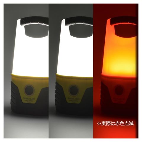 フロート構造、水などに底部が触れると自動的に赤色点滅、3種、白色HIGH、白色LOW、赤色点滅の点灯モード、単2形乾電池3本、単3形乾電池3本、2種類の電池で使用可能、IPX6の耐水形、約2mからの落下衝撃に耐えられる、ハンドル付き、夜間作業、アウトドア、非常時の警告灯補助