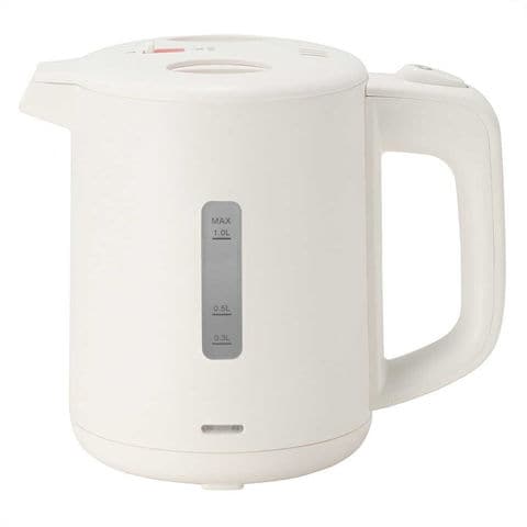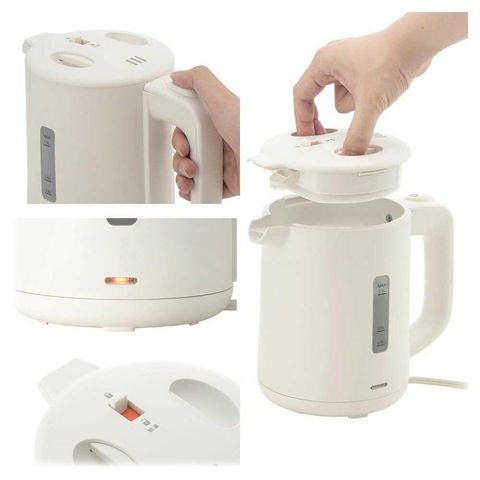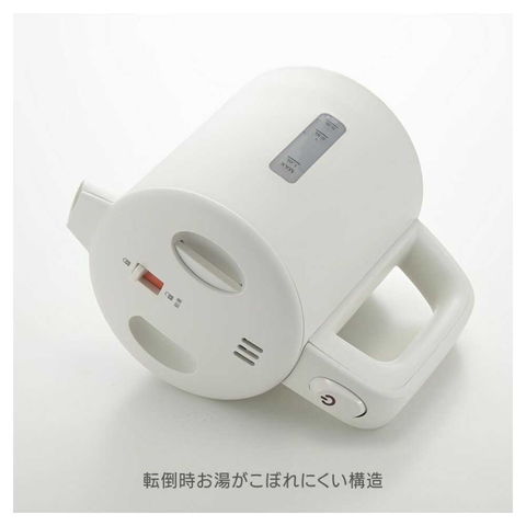 転倒してもお湯がこぼれにくい、給湯ロックスイッチ付き、スイッチひとつでお湯が沸く、ふた開閉つまみ付き、通電ランプ付き、最大容量 1.0リットル