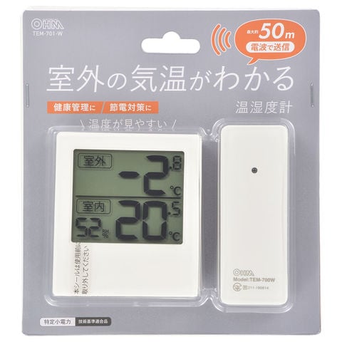 オーム電機 室外の気温が分かる温湿度計