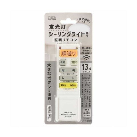 オーム電機 蛍光灯シーリングライト専用照明リモコン 調光対応