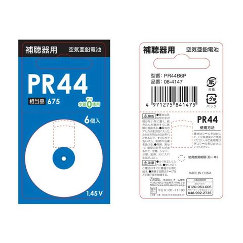 オーム電機 空気亜鉛電池 補聴器用PR44 PR44B6P 6個入